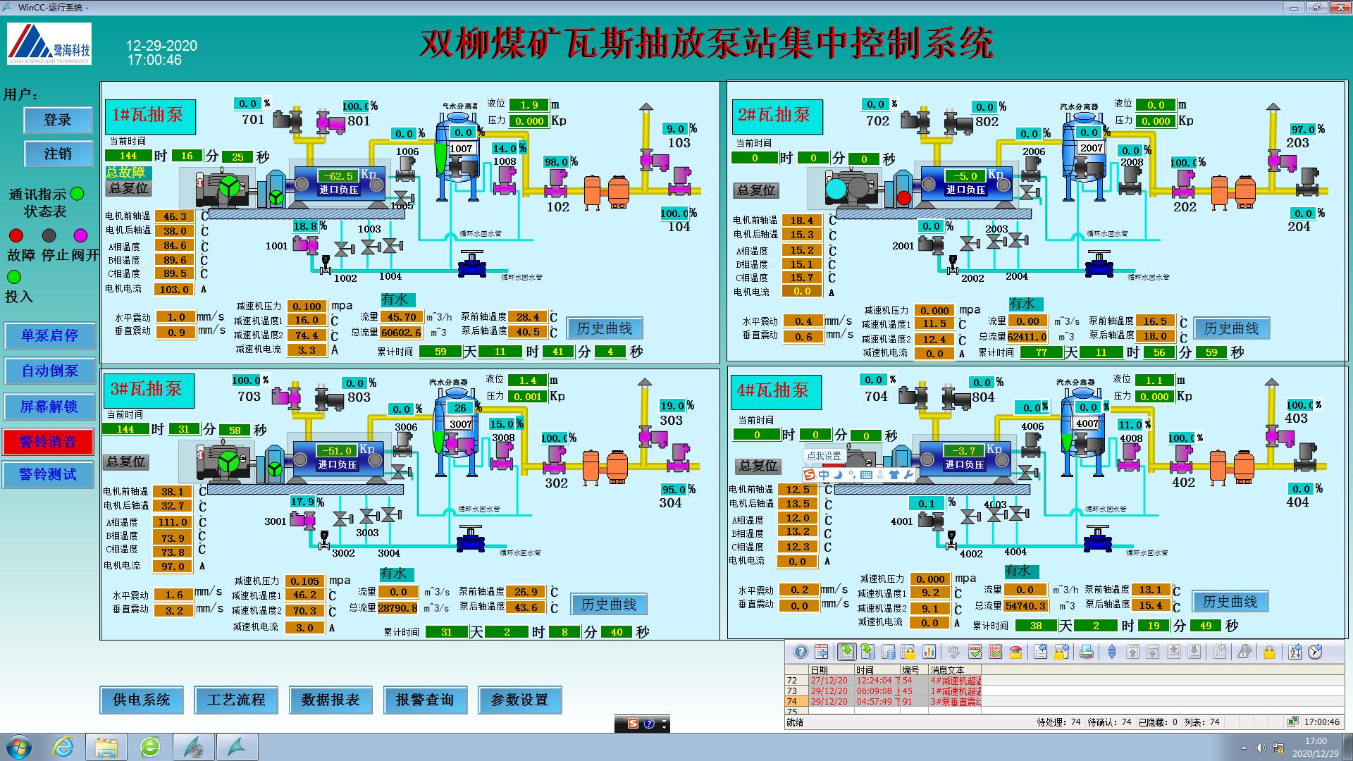 實現瓦抽站重點設備遠程控制、一鍵倒泵、故障自動倒泵等功能